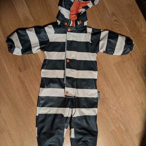 Ohut ulkohaalari lämpimään kevääseen ja viileään kesään. Sisävuori puuvillaa. Hihoissa ja lahkeissa "taskut" joilla saa kädet kädet ja jalat piiloon. Muuten kuin ne uusi, mutta toisessa hihassa löytyi tahra, joka ei ei erotu kuosin ansiosta kovin vahvasti, ks, kuva. Nouto Tampere/Hervanta tai Tori diili.