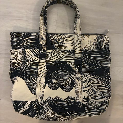 Myydään Marimekon Matkuri laukku. Vetoketjun vieressä pieni reikä, muuten siistikuntoinen laukku. Hajusteeton ja savuton koti.
