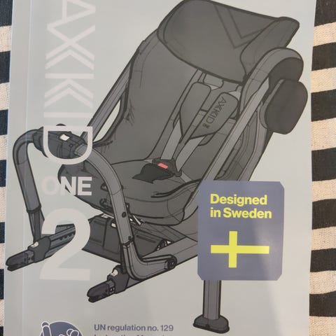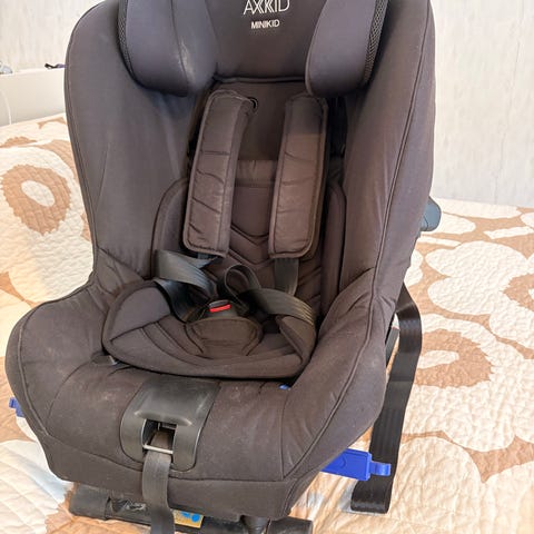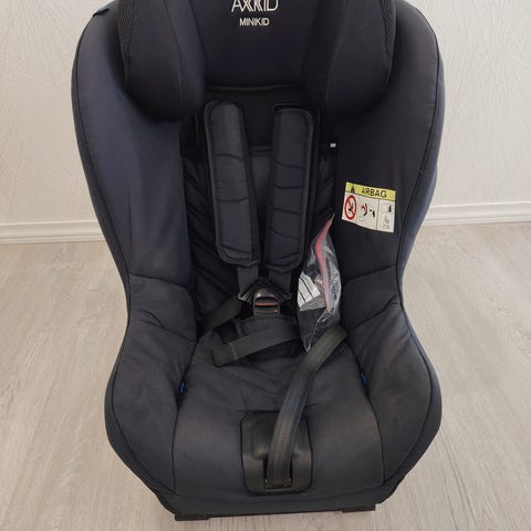 Axkid turvaistuin, enimmäispaino 25 kg. Istuimessa on viisipistevaljaat ja säädettävä pääntuki. Soveltuu lapselle, joka käyttää 25 kg asti olevaa turvaistuinta autossa. Väri tummasävyinen kangasverhoilu, haalistunut.