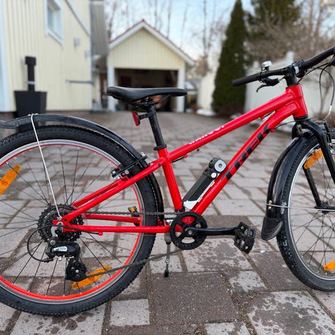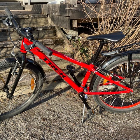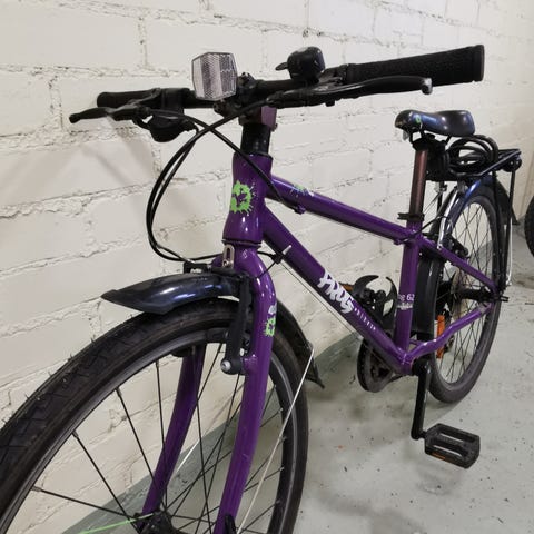 Lasten polkupyörä 24" renkailla. Rungon väri on musta ja vanteissa sekä satulassa on pinkkejä yksityiskohtia. Pyörässä on jalka- ja käsijarru, 7-vaihteinen (Shimano) kierrettävä vaihdevipu, lokasuojat edessä ja takana sekä tukeva tavarateline ja takavalo (etuvalo ei toimi). Soveltuu arkipyöräilyyn lapselle, jolle 24" koko on sopiva. Molemmat avaimet, käyttöohjekirja ja kuittikin löytyy. Nouto Espoon Mikkelästä. Toimitus n. 10km säteellä mahdollinen.