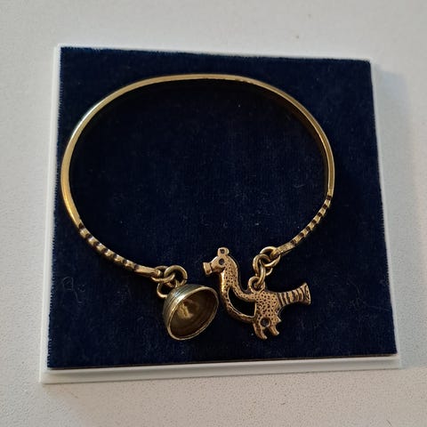 Pronssinen Kalevalakorun Hattulan lintu. N 3,5 cm. Käyttämätön.