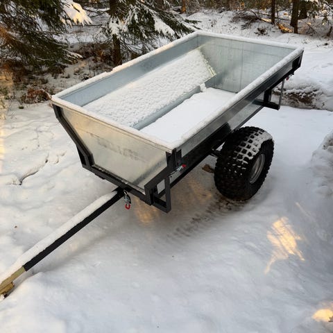 Mönkijä, jossa edessä kiinnitetty lumiaura. Väriltään musta. Varustettu etu- ja takatelineillä sekä maastorenkailla. Soveltuu pihan ja piha-alueiden auraamiseen sekä yleiseen maastoajoon käyttäjän tarpeen mukaan.