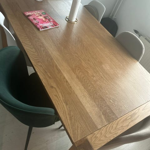 Ikea x Hay ruokapöytä, 90x200cm. Hyvässä kunnossa, jotain pieniä käytönjälkiä pöytälevyssä. Jokaisessa jalassa pienet tuolien aiheuttamat nirhaumat.