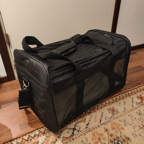 Zooplus exclusive view-reppu. Hieman naarmussa mutta muuten toimiva. Pyydän 10€, ostettu ~30€. Oma kissa ei tykännyt 😄