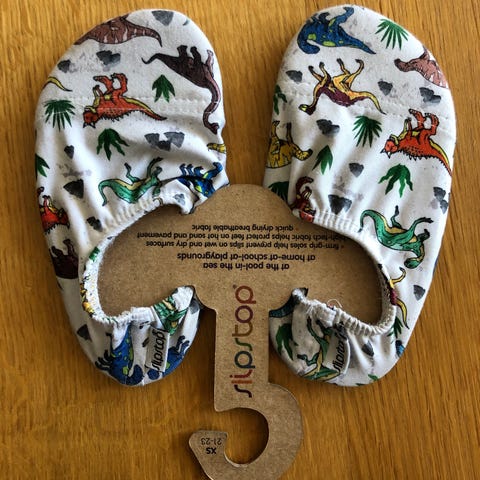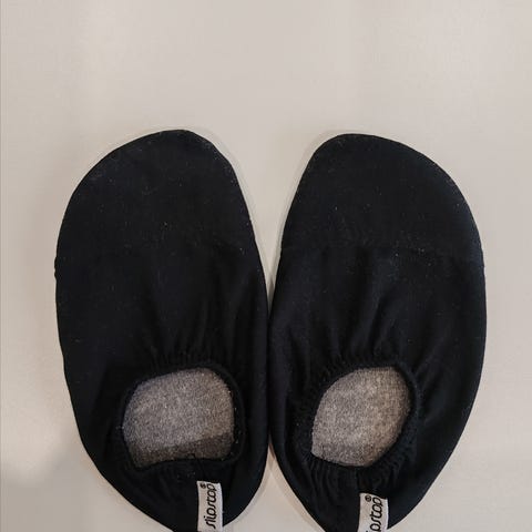 Myynnissä slipstop tossut. Koko on 21-23, joustavat hyvin joka helpottaa pukeutumista. Ihan pieni kuluma näkyy toisen tossun etureunassa (ei kulumaa puhki, vai haalistunut siitä kohtaa)
