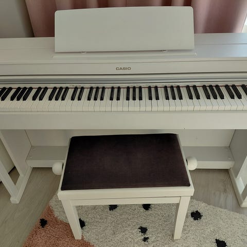Piano, jalusta, pedaali ja virtajohto. Hyvin vähän käytetty ja siksi erinomaisessa kunnossa.