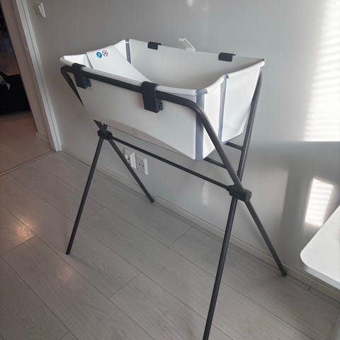 Stokke taitettava vauvan kylpyamme. Laadukas, vain vähän käytetty. Ammeessa on keskellä pohjatulppa veden tyhjentämistä varten. Reunat taittuvat kasaan säilytystä ja kuljetusta varten, jolloin amme vie vähän tilaa. Soveltuu vauvan ja pienen lapsen kylvettämiseen kotona tai matkalla. Tähän mahtuu kaksikin pientä lasta istumaan. Koko 40x80 cm