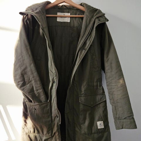 Twothirds Barcelonan melkein uudenveroinen takki, ulompi ja sisempi kerros puuvillaa. Pieniä tahroja etutaskun kohdalla, en ole pessyt.