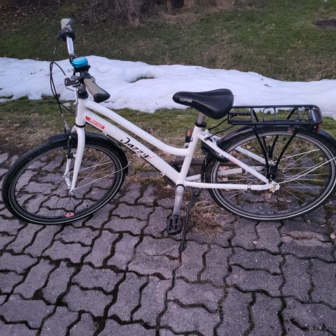 Nopsa Jazzy lastenpyörä 24" renkailla. Pyörässä on kiinteä ketjusuoja, tavarateline takana sekä lokasuojat edessä ja takana. Väriltään pyörä on valkoinen. Soveltuu noin 24"-kokoista pyörää käyttävälle lapselle tai nuorelle kaupunki- ja arkiajoon.