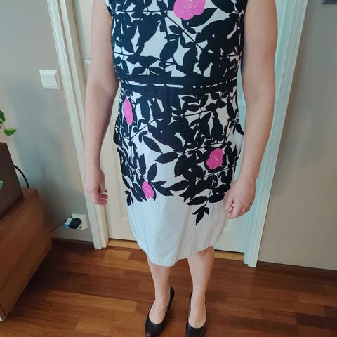 Marimekko Kandi naisten mekko, koko S. Materiaali 100 % puuvillaa. Mekossa on kirjavan sävyin näyttävä kuosikuviointi. Malli on väljä ja polvipituinen tai sitä pidempi, puolipitkillä hihoilla. Sopii arki- ja vapaa-ajan käyttöön.
