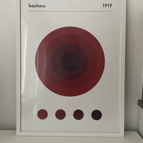 Myös toinen ilmoitus kehyksestä ja toisesta julisteesta (Bauhaus).