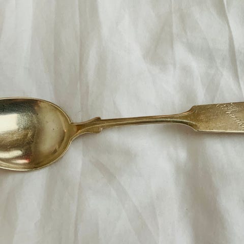 Jämäkkä hopeinen pikkulusikka, pituus 12,5cm.