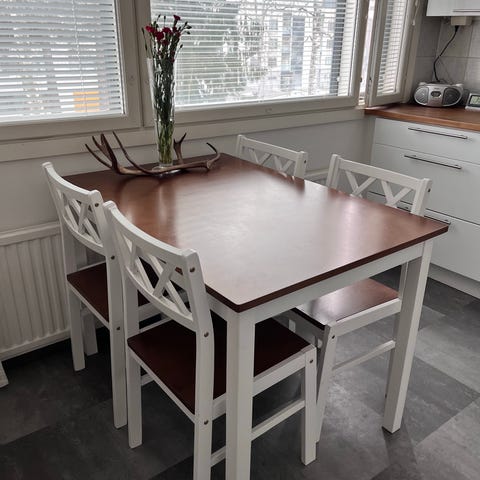 Myydään ruokapöytä ja kaksi tuolia.