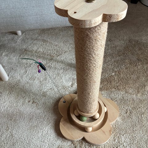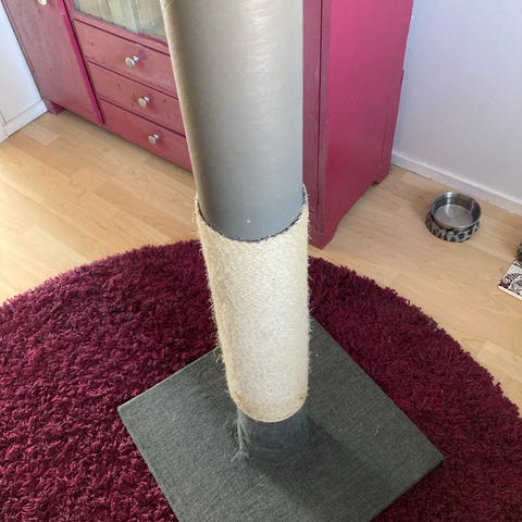 Zoofari-raapimispuu kissoille. Pyöreä jalusta ja pystysuora raapimistolppa, jonka kork. 54 cm. Ei kiinnostanut meidän kissaa.