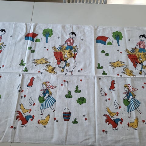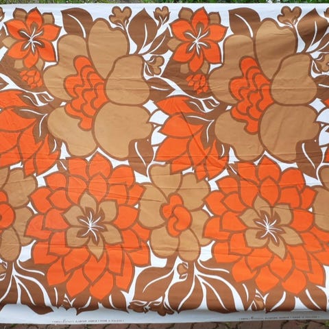 Fin-Helen Helenius Kaurankukka vintage kangas musta keltainen 268x138 cm
