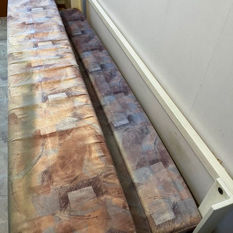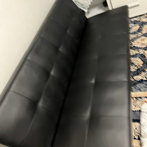 Sininen taittetava sänky, joka muuntuu istuma-asennosta makuuasentoon. Sängyssä on yhtenäinen pehmuste ja selkänoja, jotka taittuvat alas muodostaen nukkumiseen sopivan alustan. Päällinen on sileäpintainen ja helppo pitää puhtaana. Sopii esimerkiksi olohuoneeseen, vierashuoneeseen tai tilapäiseksi nukkumapaikaksi.