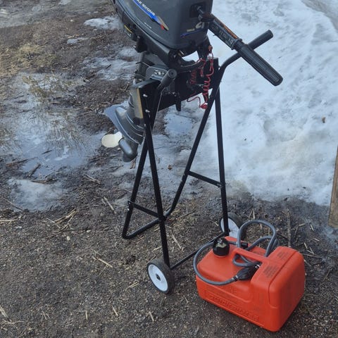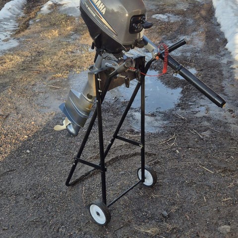 Juuri huollettu ja siistikuntoinen Yamaha 4hv, 2-tahtinen ja lyhytrikinen perämoottori. Tässä mallissa on vaihteet: Eteen-vapaa ja pakki.