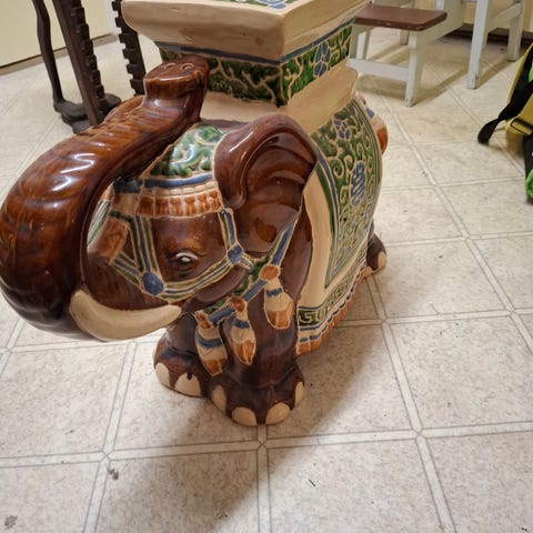 Kuvan norsu kukkapöytä. Halutessa lisähintaan saa kasvin ja ruukun mukaan..