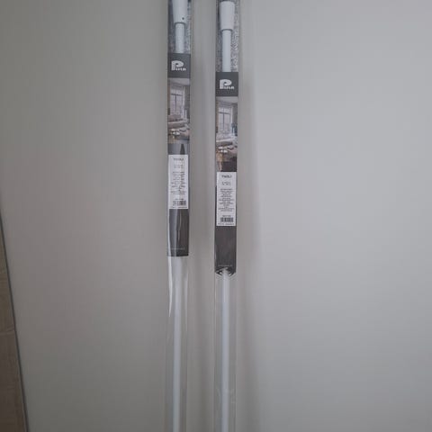 Myydään kahdet mustat, valurautaiset verhotangot sisältäen kaiken tarvittavat verhojen ripustamiseen (runsaasti ripustusklipsejä).
