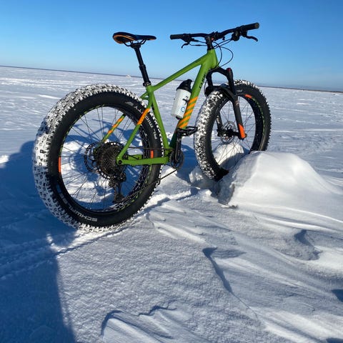 Hyväkuntoinen Salsa Mukluk. Muuten vakio Advent X -malli, mutta litkutetut Jumbo Jimit renkaina. Varmaan joku naarmu löytyy jos syynää, mutta erittäin siisti kampe.