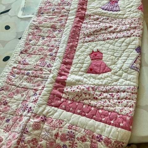 Pikku peitto vauvalle tai vaikka lemmikin pehmusteeksi. Mitat 110cm x 80cm. Peitossa printattuna todella hailakoita kuvia pupuista nurmikolla, joita en yrityksistä huolimatta saanut kuvattua hyvin näkyviin. Pesty ennen myyntiin laittoa.