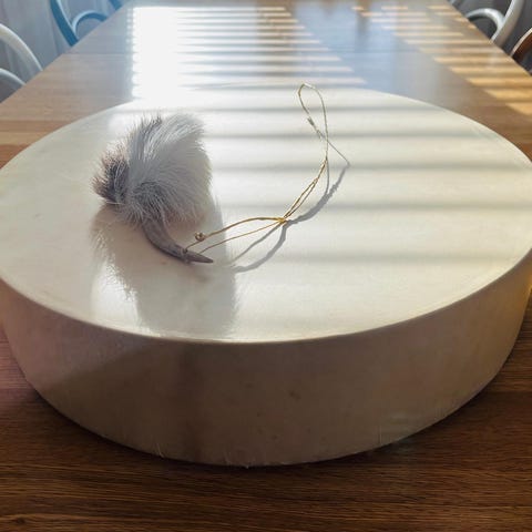 Käsityönä tehty poronnahkainen Lapin rumpu.