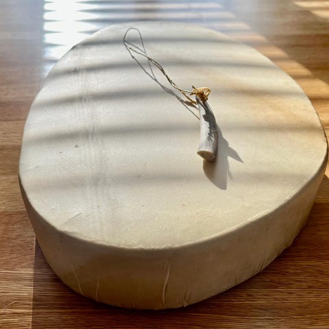 Käsityönä tehty Lapin rumpu, soikea.