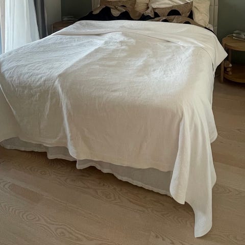 Casa Stockmannin laadukas kermanvärinen parisängyn päiväpeitto 100% puuvillaa. Pesty. Mitat noin 265 cm x 215 cm.