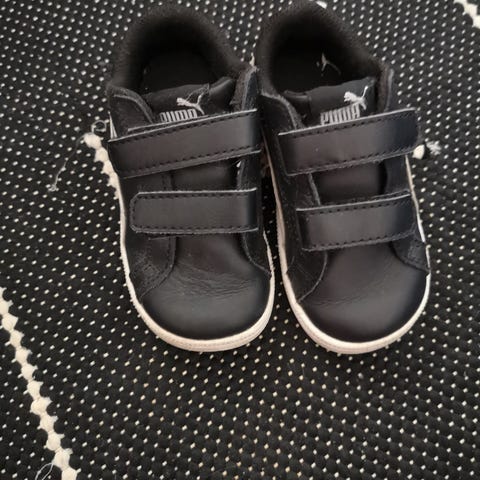 Puma Smash Fun LV Inf lasten tennarit unisex-mallia. Koko EU 21. Väri musta, valkoinen pohja. Meillä ollut paljasjalkakenkien ohella kompromisseina käytössä, hyvä varvastila eikä kovin jäykkä pohja.
