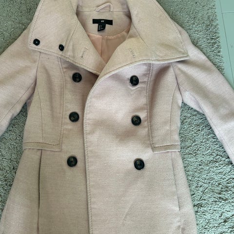 Kevyt vaaleanpunainen takki kirsikankukkakuosilla.