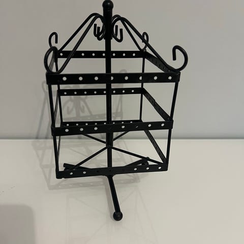 Pyörivä koruteline, korvikset kuuluu hintaan.