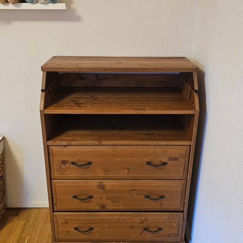 Näppärä hoitopöytä, jonka saa taitettua kokoon. Loistava esim. mökille tai pieniin tiloihin.