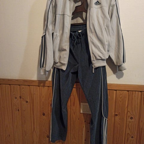 Todella siisti ja hyväkuntoinen verryttelypuku. Housut tummaharmaat takki vaaleanharmaa. Koko 162. Hinta 22€+postikulut.