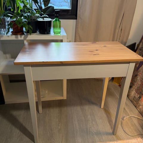 Valkoinen pieni työpöytä, vetolaatikko