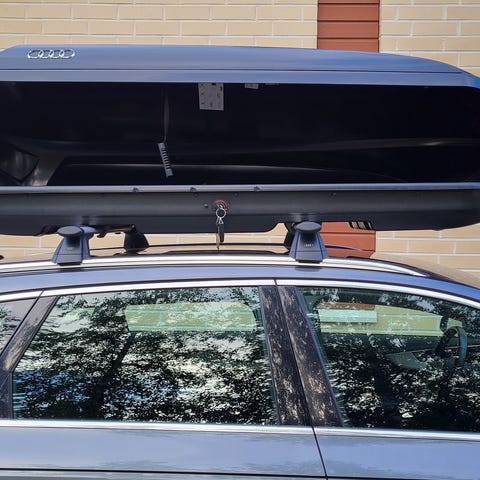 Unique kattoboksi beige. Kova kattoboksi auton katolle, saranoitu kansi ja avautuu ylhäältä. Soveltuu esimerkiksi suksien ja muun matkatavaran kuljettamiseen. Väriltään vaalea beige. Kiinnitysosat ja jalusta näkyvät kuvissa.