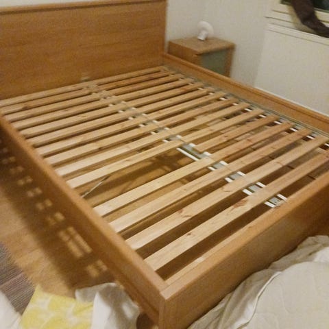 IKEA sänky runko tummanruskea puujäljitelmä. Sängyssä on korkea pääty ja matalampi jalkopääty. Pohjana on levy, ei erillisiä säleitä. Koko vaikuttaa olevan kahden hengen sänky ). Mukana näkyy yhteensopiva tummanruskea yöpöytä, jossa on yksi laatikko ja avohylly. Sopii makuuhuoneeseen perusparisängyksi ja yöpöydäksi. Ei Ikean ,kuten tekoäly ilmoittaa.