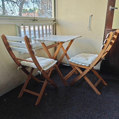 Kuuluu tuolit 2 kpl ja pöytä