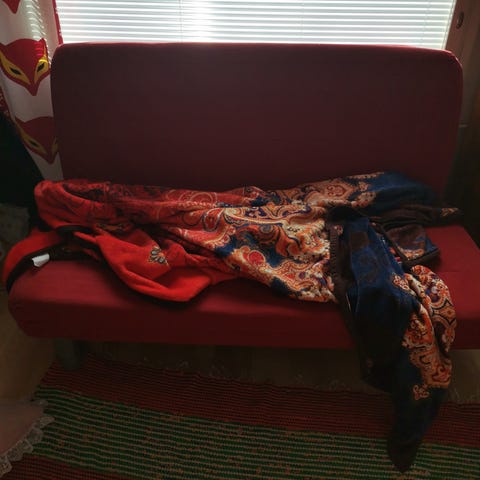Valkoinen vuodesohva. Tyynyt ja rungon vuoraus irrotettavissa ja vesipestäviä.