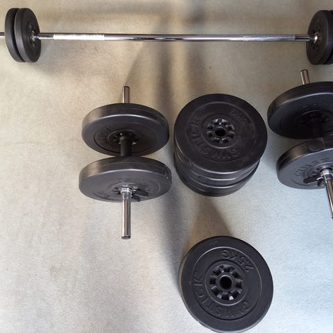 Myydään yhdessä 2 x 10 kg levypainojen kanssa.