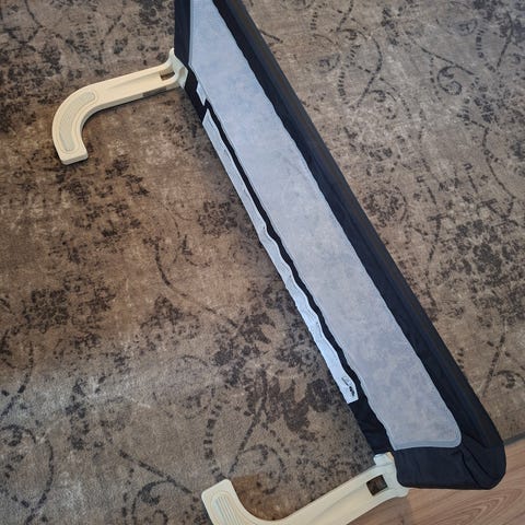 Sängyn turvalaita safety 1st. Pituus reilu metrin pisimmilleen venytettynä, saa pieneen tilaan. Käytetty hyvin vähän. https://www.prisma.fi/tuotteet/111077440/safety-1st-kannettava-sangyn-turvareuna-111077440