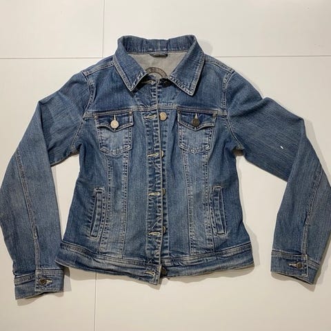 Hyväkuntoinen naisten farkkutakki, koko 40