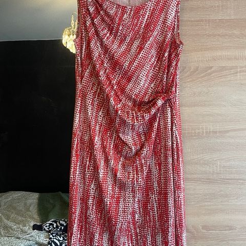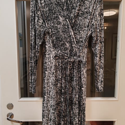 Helppo, mukava ja monikäyttöinen mekko arkeen, miksei vähän siistimpääkin pukeutumista vaativaan tilaisuuteen. Koko 44. Malli alaspäin levenevä. Väriskaala oliivi/musta/luonnonvalkoinen.