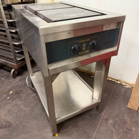 Metos VCBT4 2080 lämpöhaudeallas ammattikeittiökäyttöön. Ruostumattomasta teräksestä valmistettu allasosa useille GN-astioille, yläpuolella hylly tasoille ja tarvikkeille. Alakaapissa kolme ovellista säilytystilaa. Sähkökäyttöinen, 230 V / 16 A, teho 2 kW. Soveltuu esimerkiksi lounaslinjastoon ja muuhun tarjoilukäyttöön, jossa ruokia pidetään lämpiminä tarjoilun aikana.