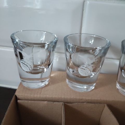 Lasien tekstit himmenneet käytössä ja osassa pieniä naarmuja. Shakerin kansi hieman ajan saatossa tummunut. Muutoin ehjä ja siisti setti.
