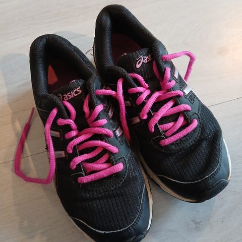 Myydään Asicsen lenkkarit kokoa 32,5. Kärjessä vähän kulumaa. Muuten hyvä kunto.