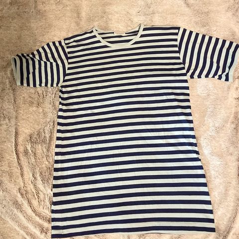 Marimekko tasaraita t-paita unisex (miesten) paita koossa S. Paita on vihreä-sini raidallinen, raikas väritys!