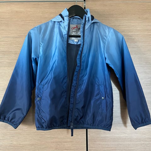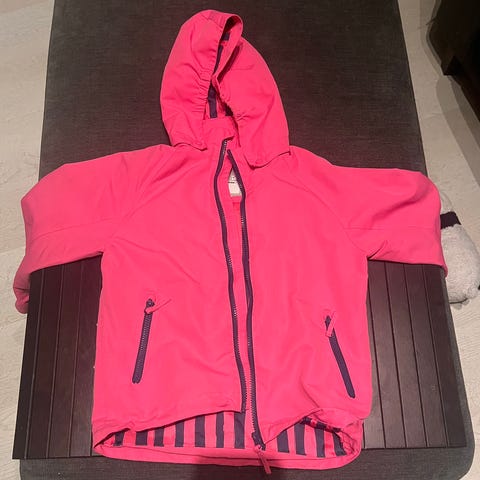 Ciraf shell jacket, size 122. Used for one season, darkening on the lighter colored areas (from normal use at the playground). Tricot lining inside. Not broken or clearly scratched anywhere.