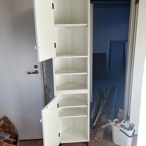 Myydään tarpeettomana hyväkuntoinen puinen kulmahylly.