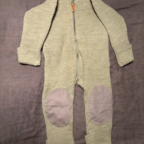 Name it merinovilla - villahaalari, koko 74. Ruskea, unisex-mallinen vauvan/taaperon kokopuku. Materiaalina merinovilla, jossa neulottu kuviointi ja edessä vetoketju helpottamassa pukemista ja riisumista. Haalari Sopii käytettäväksi esimerkiksi sisäasuna tai välikerroksena viileämmällä säällä. Koko reilu, meni 86 kokoisenakin vielä. Joitain näppyjä ja