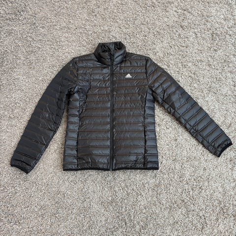 Uutta vastaava Adidas kevyt toppatakki. Vuori untuva ja höyhen, väri musta. Vetoketju, taksut.